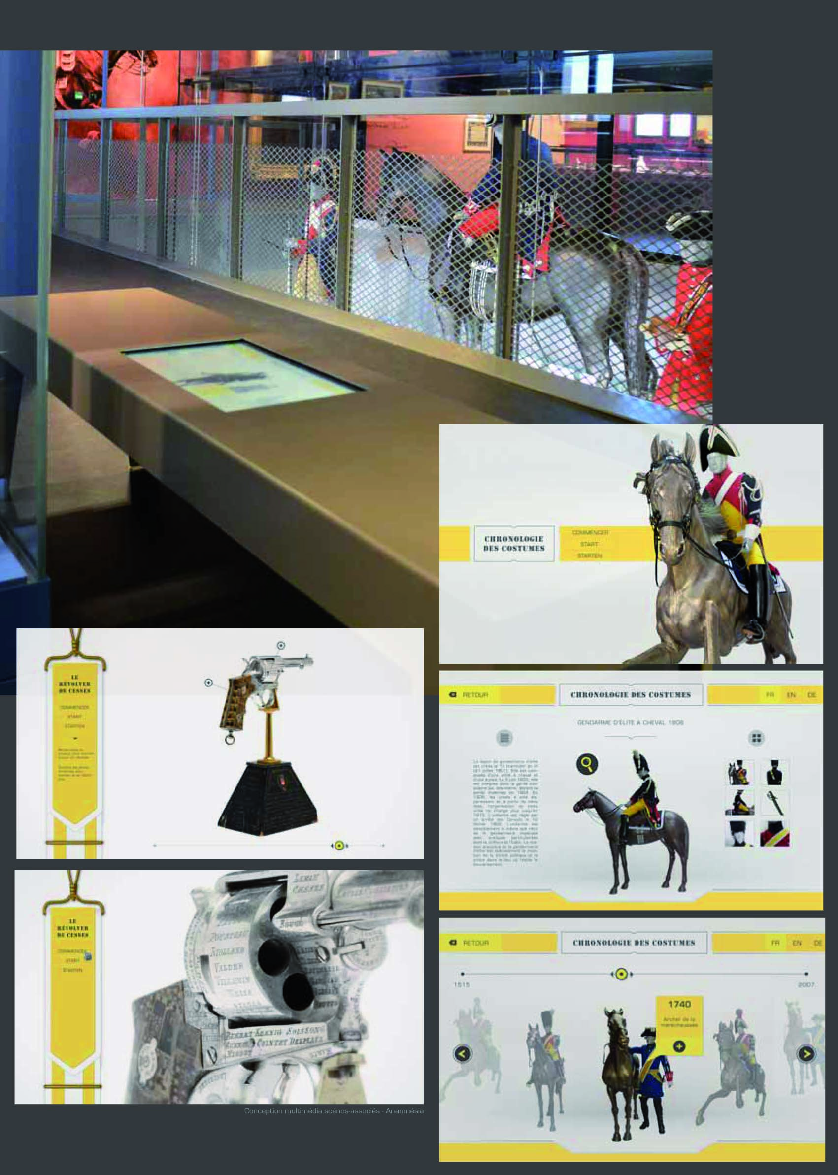 Musée de la gendarmerie nationale Melun Conception de la scénographieConception de la muséographieConception des multimédiasConception des éclairages sur les œuvresConception graphiqueConception des vitrinesConception des soclagesSuivi de réalisation Similaire